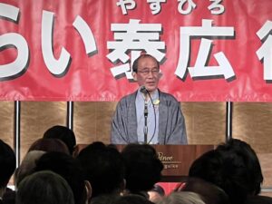 今日は来るべき戦いに向けて、岡野会長を中心とする、さくらい泰広君と左京区の未来を創る会の総決起大会を開催させていただきました。